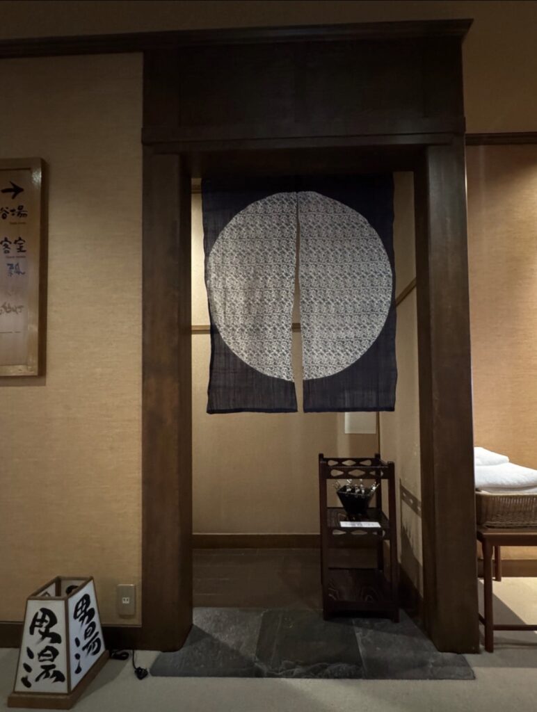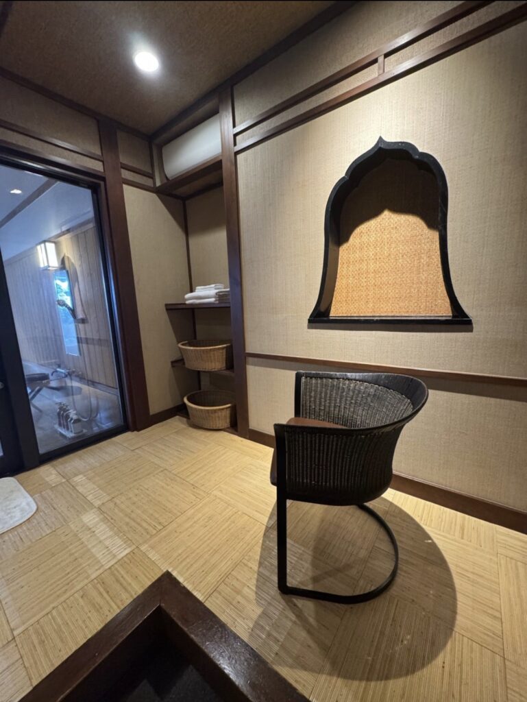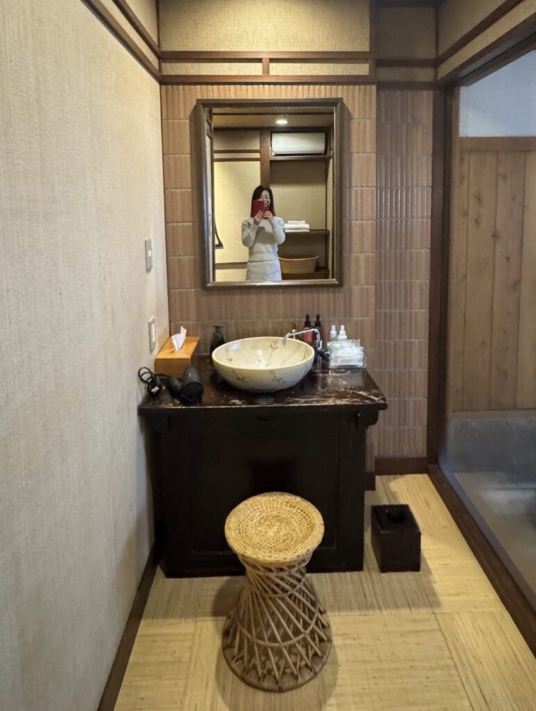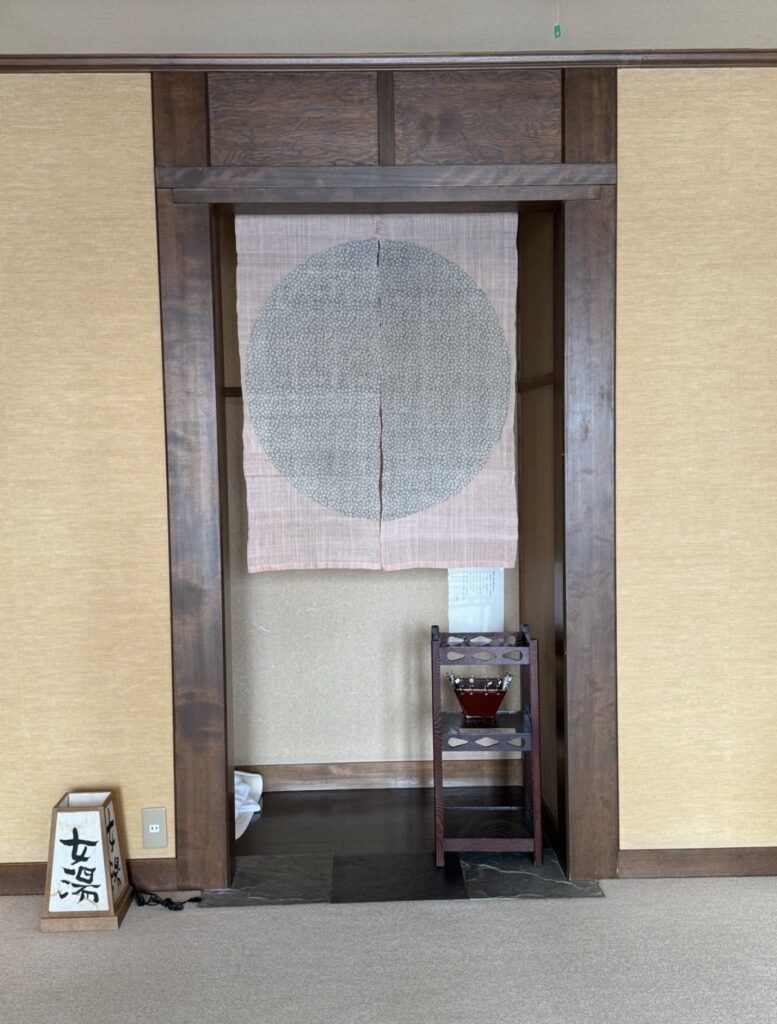 脱衣所へ通じる入口が少し狭いのが、まるで**茶室の躙口(にじりぐち)**のようで、すごく好みでした♡ 日常から非日常へと誘われるような演出ですね。