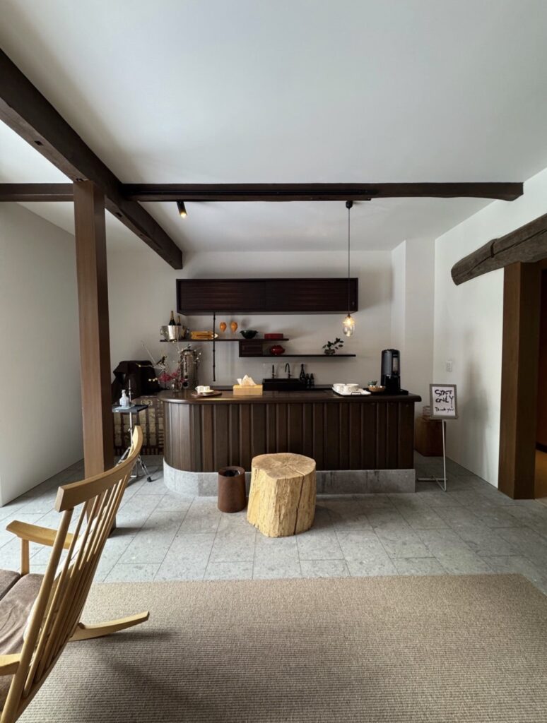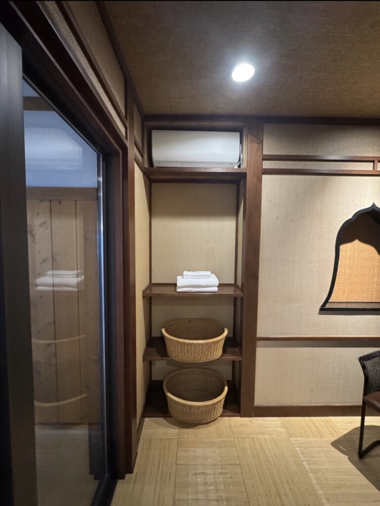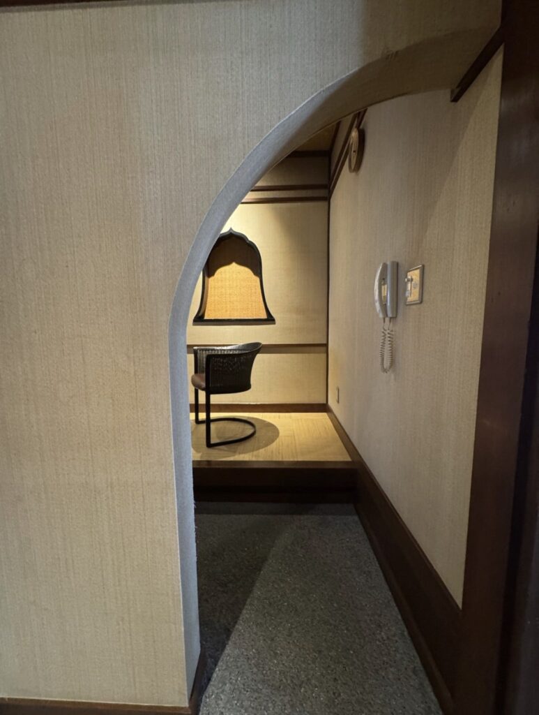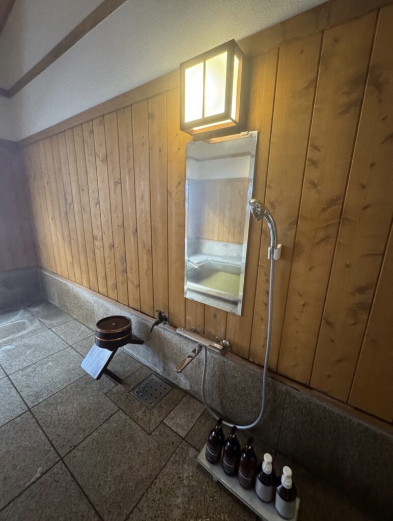 脱衣所へ通じる入口が少し狭いのが、まるで**茶室の躙口(にじりぐち)**のようで、すごく好みでした♡ 日常から非日常へと誘われるような演出ですね。