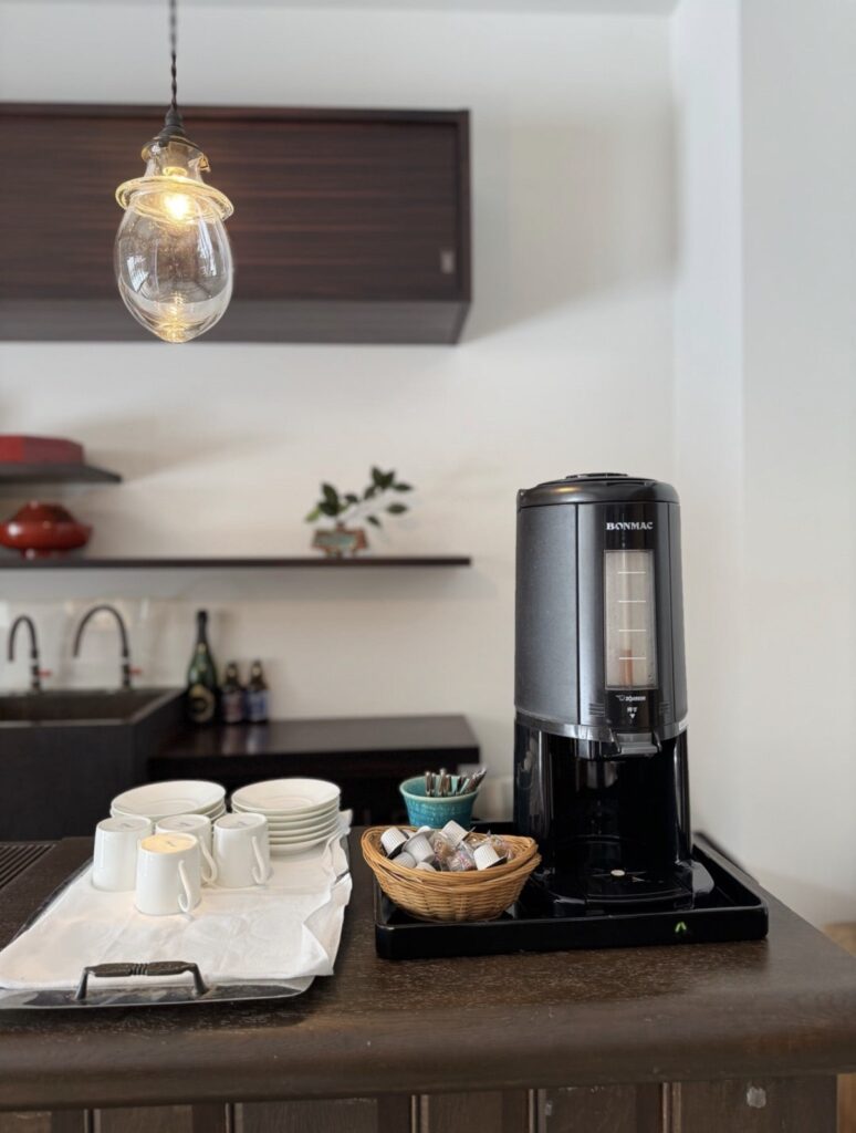 湯上がりには、素敵なラウンジで自由に珈琲をいただけます。