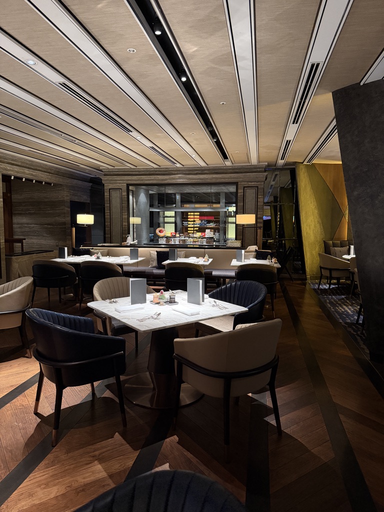 リッツ・カールトン京都の朝食会場は、地下1階にあるレストラン会場です。 朝の光が差し込むと、地下とは思えないほど明るく、日本庭園を望む静寂な空間が広がります。