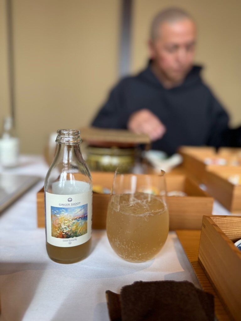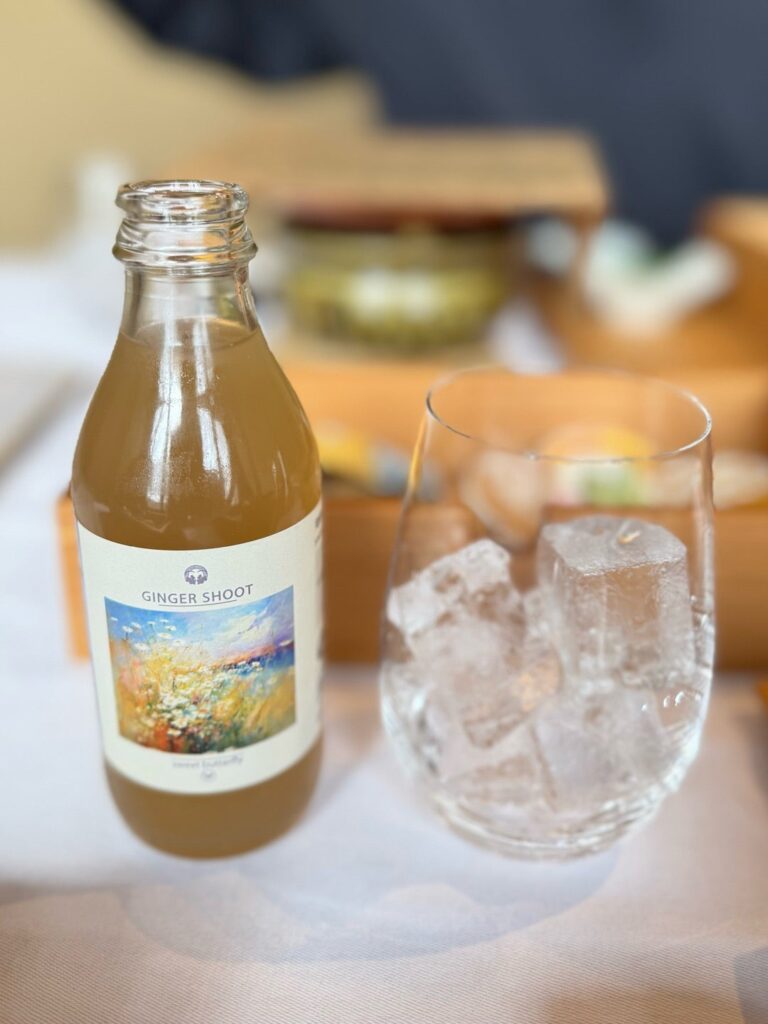 ドリンクは別料金ですが、こだわりのものが揃っています。夫は**「発酵ジンジャーエール(埼玉県産)」**をチョイス。私も同じものを。